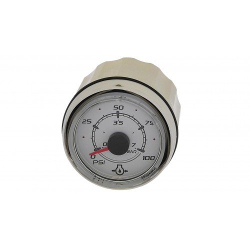 8M0052869 (79-8M0052869) OIL PRESSUR,WHITE for Mercury, Mercruiser, Force or Mariner - Mercury Marine 8M0052869 100 PSI Oil Pressure Gauge SmartCraft - Round - white. Round, white gauge face indicates engine oil pressure 0-100 PSI. Fits in 2-1/8" (52mm) hole. Glass lens for durability and long service life. Application of this SC100 series gauge will depend on the individual engine model and its sensors. Works with all SmartCraft compatible engines. Bezels are sold separately from each instrument allowing for the boater to select the color of their choice to compliment or contrast with the face of the instrument. 100 PSI oil pressure gauge 8M0052869 works with all SmartCraft compatible engines. Round, white gauge face indicates engine oil pressure 0-100 PSI. Fits in 2-1/8" (52mm) hole. Application of this gauge will depend on the individual engine model and its sensors. Bezels are sold separately from each instrument allowing for the boater to select the color of their choice to compliment or contrast with the face of the instrument. SC100 System Link gauges allow you to monitor vital engine and boat functions with digital accuracy. Furnished with a fog resistant lens, these gauges can be "daisy chain" interfaced between other SmartCraft products using a plug‑in connection. SC100 link gauges can be connected to a SC1000 System Tach, a MercMonitor or System Monitor.Mercury Marine’s passion for performance is matched by your drive for the new, the unknown. Our legendary reliability and durability let you boldly embrace your next adventure—large or small—knowing you’re backed by the best quality design, engineering, and materials.
