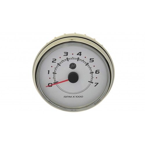 8M0052877 (79-8M0052877) TACH,7K PRM,WHITE for Mercury, Mercruiser, Force or Mariner - Mercury Marine 8M0052877 Tachometer SmartCraft - Round - White. Round, white gauge face indicates the RPM of your engine 0-7,000. Fits in 4-5/16" (110mm) hole. Glass lens for durability and long service life. Application of this SC100 series gauge will depend on the individual engine model and its sensors. Works with all SmartCraft compatible engines. Bezels are sold separately from each instrument allowing for the boater to select the color of their choice to compliment or contrast with the face of the instrument. Tachometer 8M0052877 works with all SmartCraft compatible engines. Round, white gauge face indicates the RPM of your engine 0-7,000. Fits in 4-5/16" (110mm) hole. Application of this gauge will depend on the individual engine model and its sensors. Bezels are sold separately from each instrument allowing for the boater to select the color of their choice to compliment or contrast with the face of the instrument. SC100 System Link gauges allow you to monitor vital engine and boat functions with digital accuracy. Furnished with a fog resistant lens, these gauges can be "daisy chain" interfaced between other SmartCraft products using a plug‑in connection. SC100 link gauges can be connected to a SC1000 System Tach, a MercMonitor or System Monitor.Mercury Marine’s passion for performance is matched by your drive for the new, the unknown. Our legendary reliability and durability let you boldly embrace your next adventure—large or small—knowing you’re backed by the best quality design, engineering, and materials.