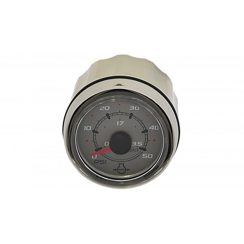 8M0065976 (79-8M0065976) GAUG-WTR PRSR GRY for Mercury, Mercruiser, Force or Mariner - Mercury Marine 8M0065976 Water Pressure Gauge SmartCraft - Round - Gray. Round, gray gauge face indicates the pressure of cooling water in your engine from 0-50 PSI. Fits in 2-1/8" (52mm) hole. Glass lens for durability and long service life. Application of this SC100 gauge will depend on the individual engine model and its sensors. Works with all SmartCraft compatible engines. Bezels are sold separately from each instrument allowing for the boater to select the color of their choice to compliment or contrast with the face of the instrument. Cooling water pressure gauge 8M0065976 works with all SmartCraft compatible engines. Round, gray gauge face indicates the pressure of cooling water in your engine from 0-50 PSI. Fits in 2-1/8" (52mm) hole. Application of this gauge will depend on the individual engine model and its sensors. Bezels are sold separately from each instrument allowing for the boater to select the color of their choice to compliment or contrast with the face of the instrument. SC100 System Link gauges allow you to monitor vital engine and boat functions with digital accuracy. Furnished with a fog resistant lens, these gauges can be "daisy chain" interfaced between other SmartCraft products using a plug‑in connection. SC100 link gauges can be connected to a SC1000 System Tach, a MercMonitor or System Monitor.Mercury Marine’s passion for performance is matched by your drive for the new, the unknown. Our legendary reliability and durability let you boldly embrace your next adventure—large or small—knowing you’re backed by the best quality design, engineering, and materials.